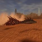 When you have located a Fasolasuchus hiding in the sand, use explosives to inflict damage and force it to exit. A brief stun period triggers on the Fasolasuchus allowing you to mount it and provide temporary control over the creature.
