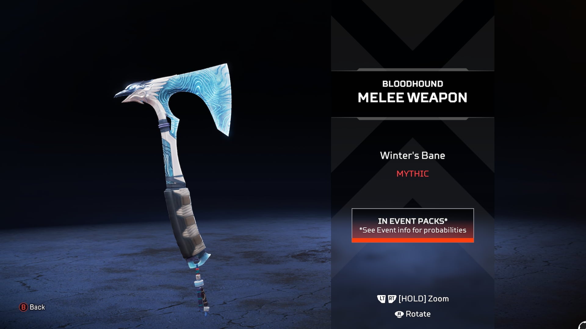 After the event is over, the Winter’s Bane Heirloom will go into the Mythic shop, where anyone can unlock it with 150 Heirloom Shards.