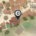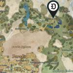 To find this pond, follow the road to the east of the POI’s name on the map, where the “palm” of the hand is. Enter through a tunnel found off the road, and you’ll eventually come to a small body of water. Be ready to get your feet wet, because you’ll need to jump in and head through the opening at the bottom of the pond. From here, you’ll see a small room with a metal grate of a ceiling, and the Golden Plaque of Oaths will be sitting atop folded blankets amid the rubble.