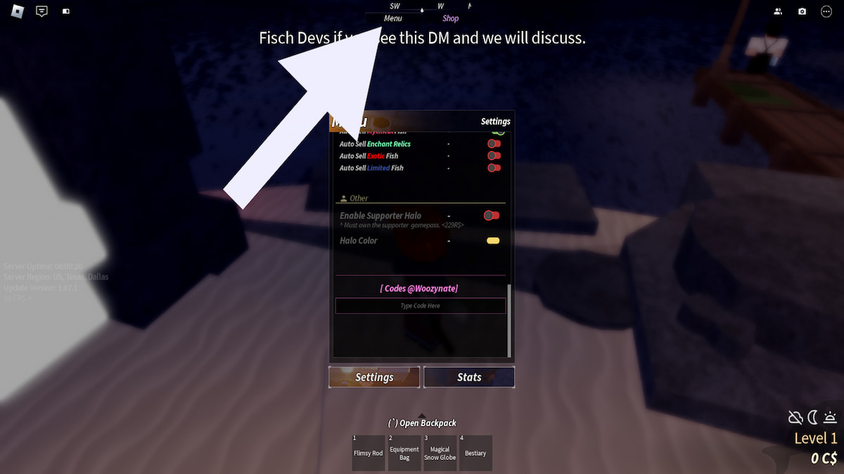 How to redeem codes in Fisch Modded