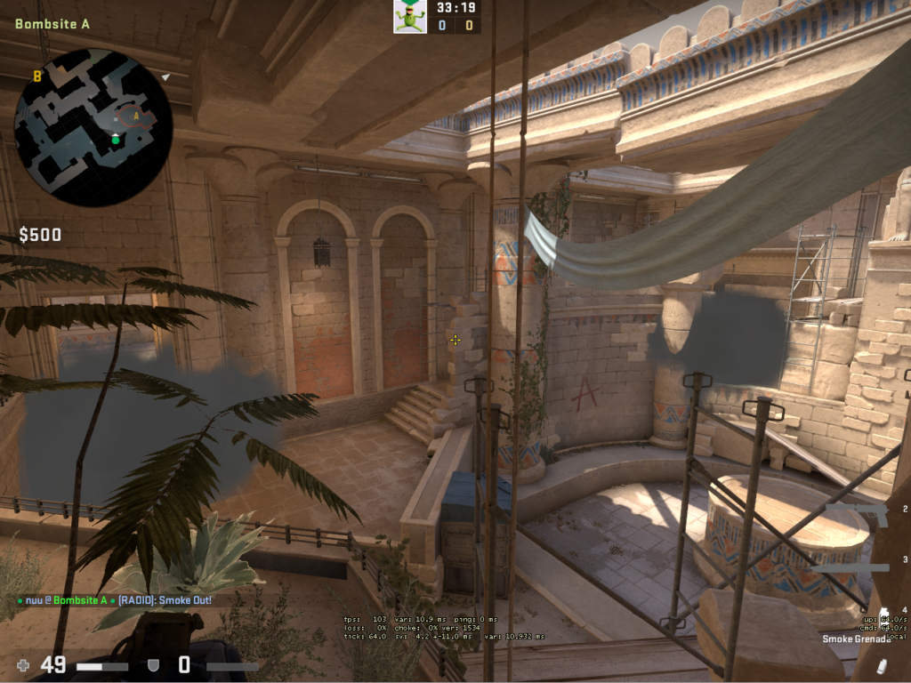 You’ll be setting up the whole team with some easy utility. This will focus on smokes, as the flashes will be easier to throw through the many windows and broken bricks in Anubis.