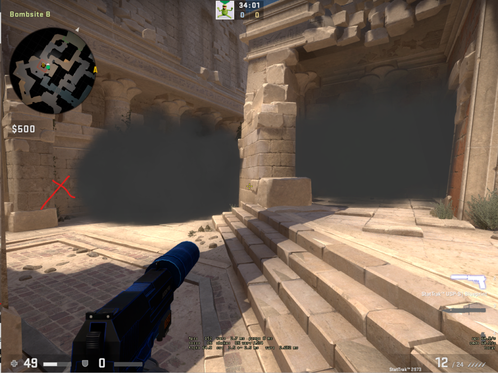 Be careful with this smoke when you enter the site. There is a small section where a player can push up into a corner toward CT. You’ll have to check this position as it could lead to some sneaky kills.