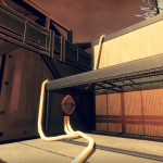 The arena for this encounter is quite small. A central platform houses the starting nodes for four different yellow power lines, which extend out toward four catwalks that surround it. These catwalks are each assigned numbers—marked as 01 to 04—that can be seen on signs attached to the sides of each one.
