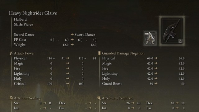 For the purposes of this build, you should focus on Strength more than Dexterity. While both are viable offensive stats, Strength scales most Halberds’ damage better. However, 40 Dexterity still lets you wield a significant number of weapons in the game that focus on Dexterity and it is high enough to let you use the Quality affinity without an issue. You can use a Heavy Gargoyle’s Halberd one moment and then swap to a Quality Warhawk’s Talon the next.