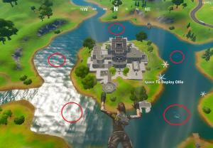 There are five of them around The Agency and they resemble the shape of a star. This quest requires players to swim over them, which only takes about a minute or so after landing.