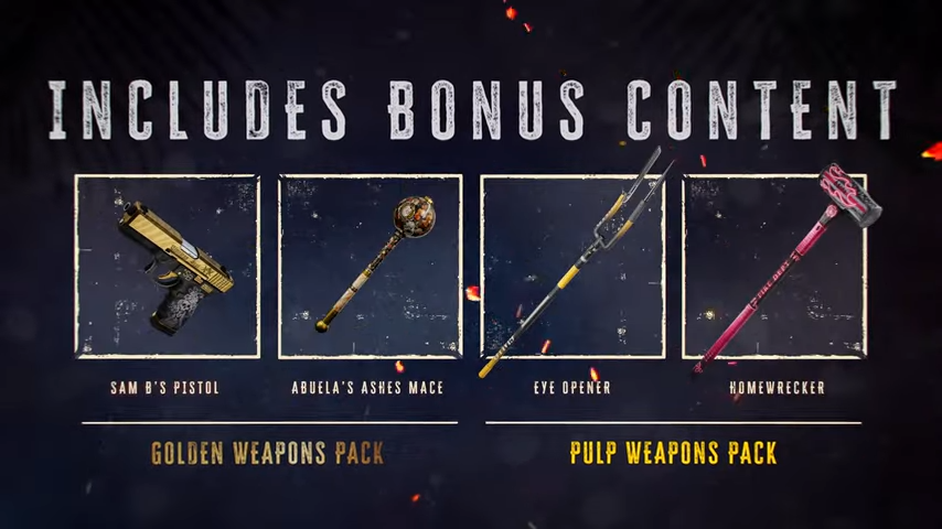 You’ll also receive some weapons to help you take down any zombie. Players can look forward to new pistols and melee weapons to help them clear through herds of the undead.
