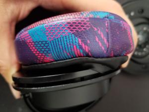 - Gently tug at the edges of the earpads to slide them out of the divot that holds them in place. Use caution to avoid tearing the material.