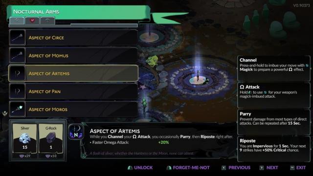 With this Incantation unlocked, head to the Silver Pool—where you choose and unlock your Nocturnal Arms. Touch the pool’s center to see the menu for unlocking your Arms. The tab to the right is where you may upgrade the ones you already have, including the base Melinoë options. These take a lot of rare Reagents, so be sure to space them out.