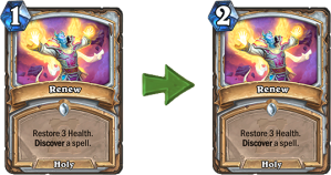 Renew’s mana nerf will prevent it from being found from cards like Wandmaker. And if it were to be discounted by cards like Palm Reading, it would need an extra reduction to be free. With both of these nerfs, Priest will become a less effective deck on the current ladder. This also might be a sign that a Shadow-style Priest deck will be pushed when United in Stormwind is released with the revealed Darkbishop Benedictus.