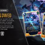 Hallowed is an LoR keyword mechanic that is directly tied to Gwen but can get used without the Shadow Isles champion. Upon a unit dying that has Hallowed, the first unit to attack gains +1/+0 in stats. Stats will stack and increase with each Hallowed death. Two Ghastly Bands dying, for example, will add +2/+0 to the Hallowed stack for the remainder of the game.