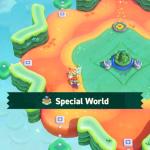 Refer to your Courses for a full overview of the worlds and their corresponding levels. You can keep track of your progress here. Simply click ‘+‘ inside the free-roam of a world for level selection and enter the ‘Courses‘ menu. When all Wonder Seeds and Purple Coins are collected, and every flagpole is mounted, enter the Special World in the post-game to unlock the Final-Final Test Badge Marathon.