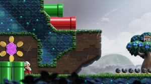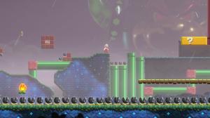 Carry on with the level and use the POW blocks to free up the question mark block, and summon forth another red pipe. Enter it, and then immediately activate the yellow block next to the next pipe, grab the invincibility star power up, keep running to the left, and you’ll eventually be able to pick up the first coin you saw when entering the level.