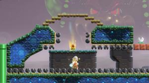 Once the world has transformed into its new look, progress through the section until you get to the pipe at the end. If you look up, you should see the Wonder Seed. You will need to either hurl a POW crate to blow up the bricks or use wall climbing / a badge to reach it.