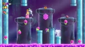 The pipework in this place is truly ridiculous and there’s little time to check each pipe as the snail army slowly encroaches upon your position. The Purple Coins and Wonder Seed are tricky to find as they remain tucked away in the corners of Swamp Pipe Crawl.