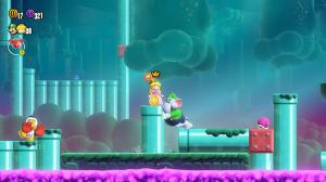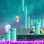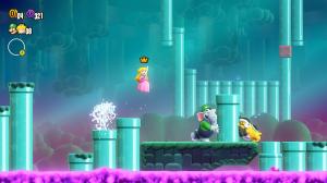 Super Mario Bros. Wonder Swamp Pipe Crawl Luigi and Peach crouched on the level
