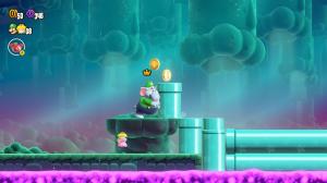 The first Wonder Seed is unlocked by completing the Wonder Effect. Picking this up will reverse the Wonder Effect, sending you back to normalcy. Make sure you pay close attention inside the Wonder Effect as falling into the poisonous rivers below will result in a game over and you’ll be sent back to the last checkpoint with a life lost.