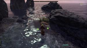 The treasure will be buried next to a flat rock. You’ll have to get your feet wet to get there, but you won’t need to do any swimming to do so. Like in the previous chest, we found weapons and armor scaled to our character’s level and a soul gem.