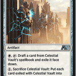 Of the thee White A:22 cards, Celestial Vault has sleeper potential against Midrange and Control decks containing board wipes. Using the Spellbook mechanic, players can draft cards from the spellbook once per turn and then place all exiled Spellbook cards in hand upon sacrificing Celestial Vault. All three Alchemy: New Capenna cards in the color White support Angel tribal builds.