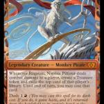 Multiverse Legends were given the same Planar Showcase treatment as Legendary team-ups, along with a foil Halo treatment and serialized versions. And serialized MOM Multiverse Legends were exclusive to less than one percent within collector boosters, making them a popular chase card. But it was the serialized Praetor Sagas that eventually became the most valuable on the secondary market, having the same drop rate as Multiverse Legends within collector booster packs while featuring a double-rainbow foil treatment.