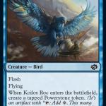 Koilos Roc is a five-drop bird with Flash and Flying. It also has 3/3 stats and creates a Powerstone token upon entering the battlefield. Koilos Roc is a solid mid to top-end Common that does everything a draft player wants from the color Blue.
