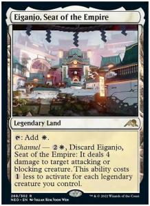Typically only one copy of each NEO legendary land is played in the main deck, providing immense value via the MTG Channel mechanic or as a much-needed untapped land upon entering the battlefield.