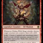 - First ability: Whenever Delina, Wild Mage attacks, choose target Creature you control, then roll a d20.