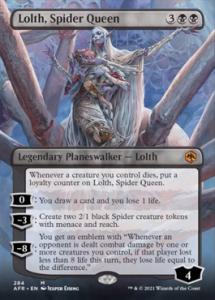 - Static ability: Whenever a Creature you control dies, put a loyalty counter on Lolth, Spider Queen.