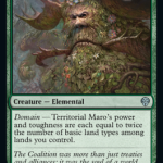 Two Green Domain spells were revealed on the first day of Dominaria United preview season. Territorial Maro is a card that was teased in Rosewater’s blog. It’s a */* creature whose power is equal to twice the number of basic Land types you control. At its best, Territorial Maro is a five-mana 10/10 creature. This will force the opponent to block and with any kind of evasion could become a decent lower-rarity finisher.