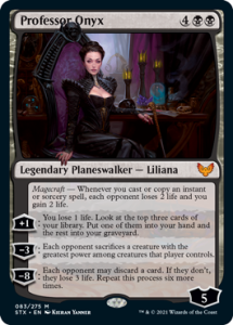 The six-mana Planeswalker is reminiscent of the War of the Spark iteration of Liliana but has a significantly different gameplan. While the last version of Liliana took advantage of creatures dying, Professor Onyx wants players to cast a slew of Instants and Sorceries.