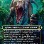 Chase versions of the Jurassic World Universes Beyond cards are found on 19 of the 20 non-land cards with a special emblem, exclusively found in Collector booster packs. And the pull rate is less than one percent.
