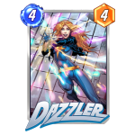 • Dazzler: 4/4 “Ongoing: If you have 4 cards at each location, +6 Power.”