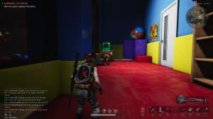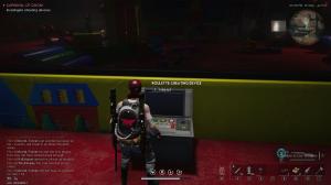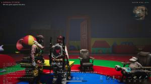 Select that option, and a large red door to the right of the table will suddenly open. This doorway leads around to the other side of the glass wall you saw when following the wire, and you’ll now be able to see a second clown hunched over a terminal back here. You aren’t able to use guns in the Carnival, but melee weapons are perfectly fine and the clown is only level five.