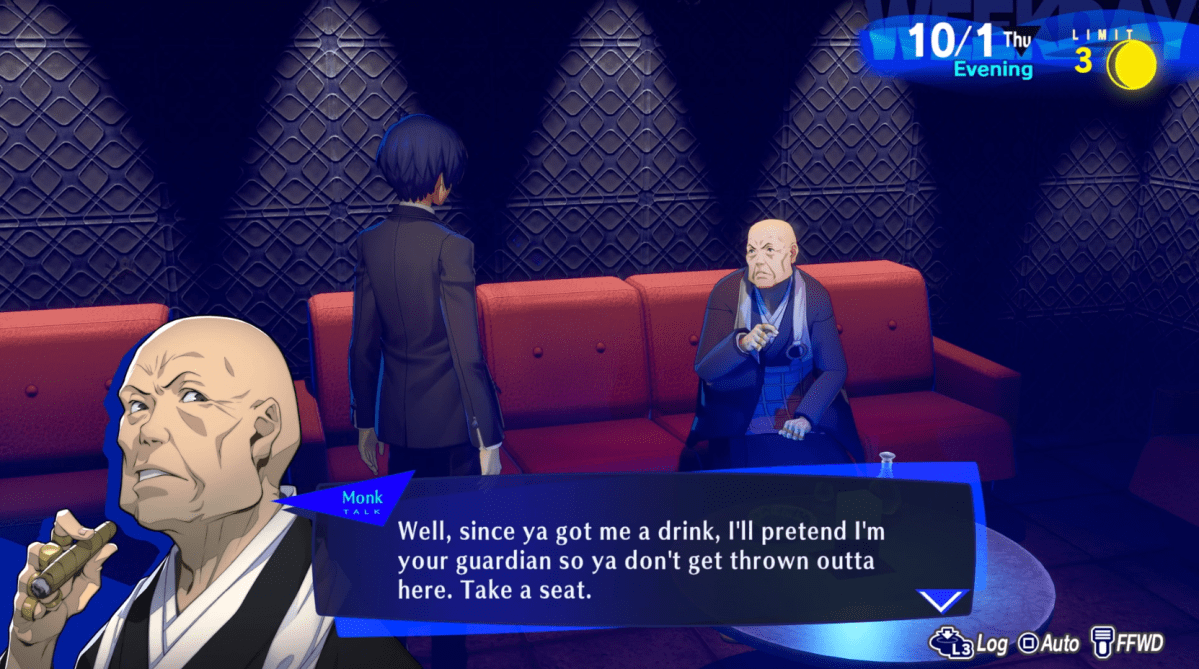 How to talk to the monk in Club Escapade at Paulownia Mall in Persona 3 Reload?