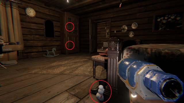 The eerie attic contains the last five dancing snowmen you need to shoot before you can leave.