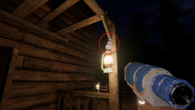 - Continue around the house until you reach the side porch which has one sitting on top of the lantern.