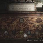 Return to the Reception room of Wood Side (where you can save the game) now that you have all three coins. The Coin Cabinet puzzle tells the tale of the Maiden and Man. You must put the three Coins in the correct slot, corresponding to each part of the tale. Each Coin can be flipped to reveal a different engraving. Here is the order: