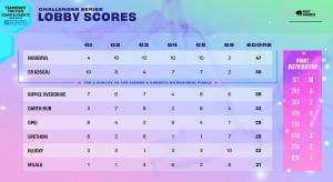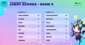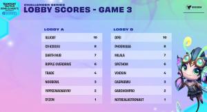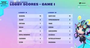 A total of 16 players were split into two lobbies for six games, with reseeding taking place every two games based on tournament points standings. Only the top eight TFT players from the first day of competition advanced to the Challenger Series playoffs.