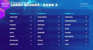 Kyivix started the day off strong with a lobby win, with SadgeSadgeSadge earning second. Guubums, following a strong day two, started off day three with an eighth.