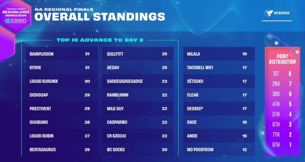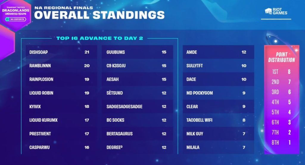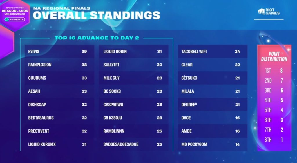 Here were the top 16 TFT players advancing to the second day of the NA Regional Finals.