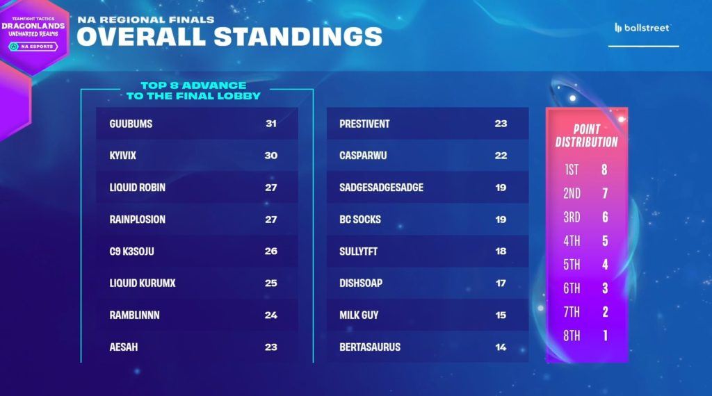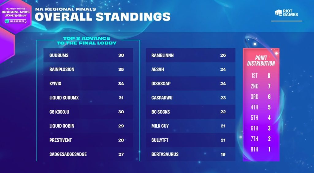 Here were the top eight TFT players advancing to the NA Regional Final playoffs.