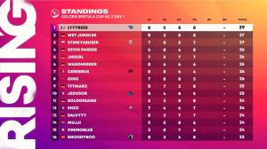 After four games played, Lyyyress was sitting atop the leaderboard with three first-place lobby wins and no bottom-four finishes. Also winning three out of four games heading into game five was Wet Jungler, sitting in second place overall.