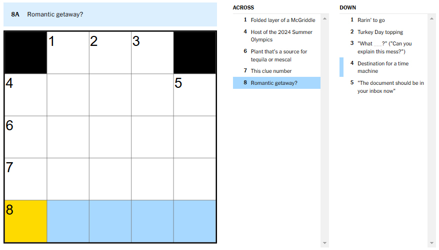‘Romantic getaway?’ NYT Mini Crossword difficulty rating