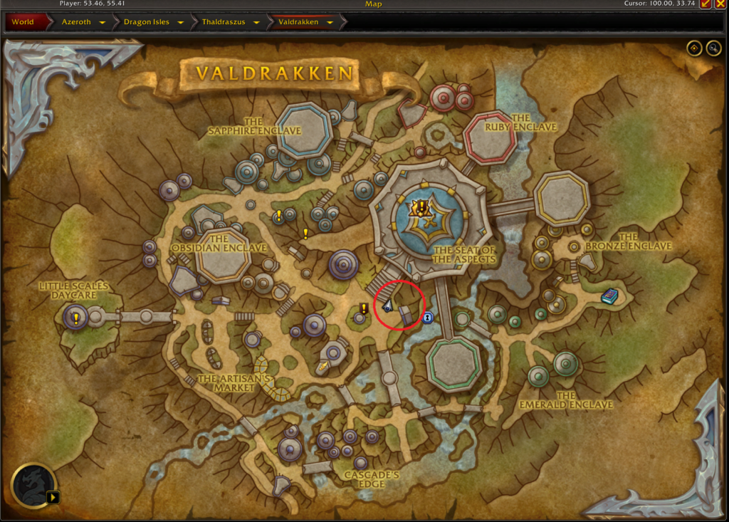 Breanni is located in the pet battle store at the coordinates 58.6, 39.6 and the easiest way to reach her from Valdrakken would be by using your Dalaran Hearthstone, if you have one, or using the Dalaran portal near the Seat of the Aspects.