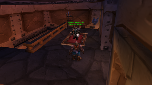 | Buliwyf Stonehand | Ironforge | Fist Weapons, Guns, One-handed Axes, One-handed Maces, Two-handed Axes, Two-handed Maces |
